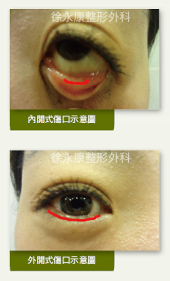 整形外科徐永康醫師表示,眼袋手術的切口方式可分為內切式與外切式,兩種方式各有其優缺點,內切式優點術後外觀無傷口,且因組織破壞較小,出血少,外表不會留下疤痕,不須拆線,復原期很短,但僅能除去多餘眼窩脂肪,無法去除多餘鬆弛眼皮,因此對於改善下眼皮鬆弛及皺紋程度有限,適合年齡層較輕,下眼瞼皮膚鬆弛程度輕微者;外切式優點可消除眼袋並同時移除多餘眼皮組織,改善眼部皺紋,撫平鬆弛的下眼皮,但因手術涵蓋部分較多,故恢復期較長,而且沿著下眼瞼睫毛處會有一條細細疤痕,約半年至一年即不明顯,適合下眼瞼皮膚鬆弛重度者及皮膚缺乏彈性的熟齡者。