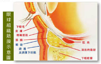 2.後天性:多是因皮膚肌肉和結締組織老化鬆弛,無法阻止眼窩脂肪凸出外推。